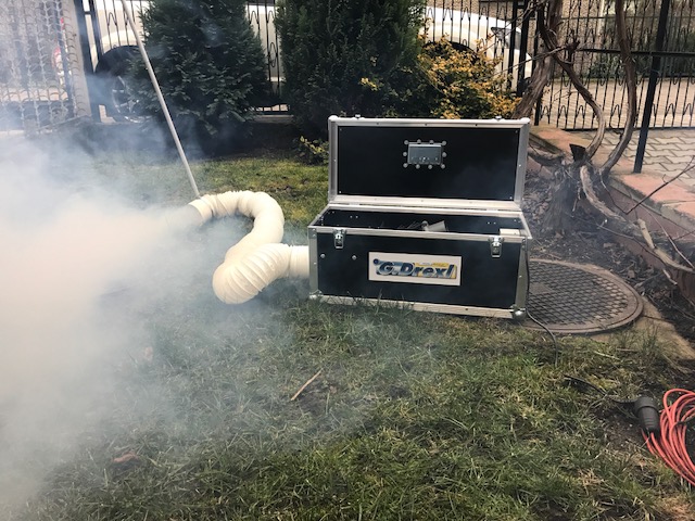 Zadymiarka kanałowa perfekcyjnie wypełnia dymem rury, kanały pozwalając na zlokalizowanie miejsc nieprawidłowych połączeń, przecieków i nieszczelności systemów przyłączy. Umożliwia także kontrolę obiektów sanitarnych i deszczowych.